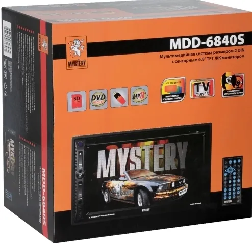 Автопроигрыватель MYSTERY MDD-6840S является многофункциональным устройством. В качестве носителей информации могут выступать CD-/DVD-диски, карты памяти или мобильные устройства, подключаемые к порту USB. Этот проигрыватель позволяет слушать любимую музыку, просматривать видеозаписи и фото на широкоформатном сенсорном TFT-мониторе с диагональю 6.8 дюйма. Сильная сторона данной модели – наличие встроенного радио- и ТВ-тюнера. MYSTERY MDD-6840S дает мощное звучание при помощи четырехканального усилителя с мощностью в 50 Вт на каждый канал. По желанию к проигрывателю можно подключить дополнительные акустические системы или внешний видеомонитор, для чего на задней панели устройства имеются соответствующие выходы. Наличие пульта ДУ и поддержка камеры заднего вида (с выводом изображения на экран) позволят повысить безопасность управления транспортным средством.