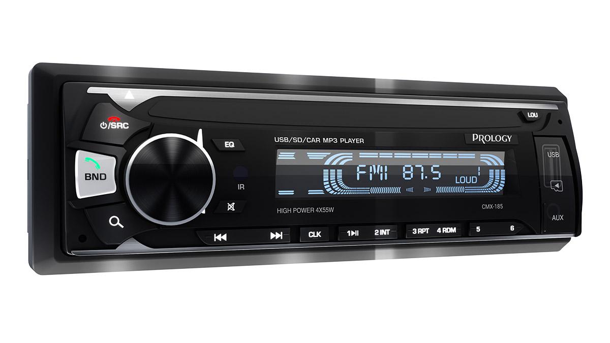 PROLOGY CMX-185 — FM SD/USB ресивер с Bluetooth, это автомагнитола стандартного размера 1DIN, которая обеспечивает прием радиостанций в диапазоне FM, воспроизведение медиафайлов, записанных на карты памяти USB / microSD, передачу звука с внешних источников, а также управление мобильным телефоном через интерфейс Bluetooth (ver. 4,2). Кроме того, устройством можно управлять с помощью приложения, установленного на Ваш смартфон с операционной системой Android.*