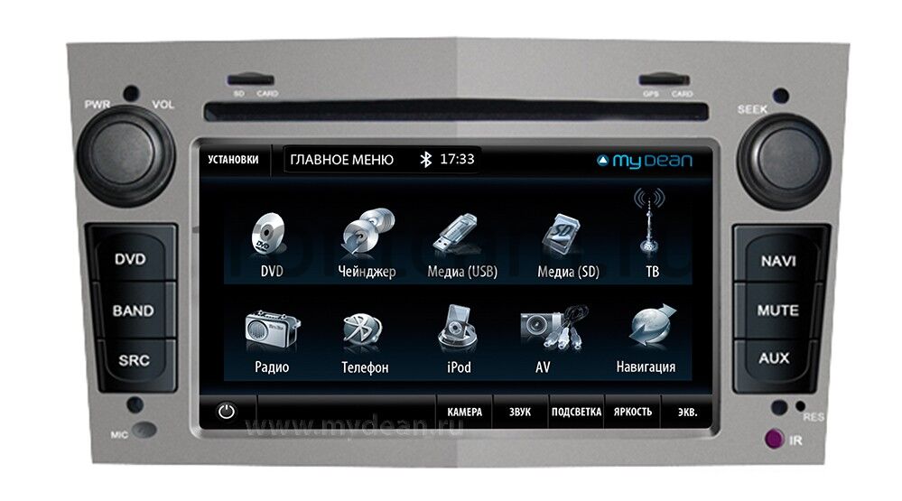 Высокая производительность и быстродействие системы гарантировано новейшим процессором STE семейства ARM Cortex. В устройстве имеется встроенный TV-тюнер, при помощи которого вы сможете смотреть свои любимые телепередачи прямо в автомобиле, а также 20-канальный GSM-модуль. Есть возможность самостоятельно выбрать навигационную программу. Система способна воспроизводить большинство популярных современных форматов аудио и видео файлов: DVD/VCD/CD/MP3/MPEG4/CD-R/WMA. Головное устройство оснащено качественным сенсорным экраном WVGA TFT диагональю 7 дюймов и разрешением 800x480. Также есть возможность опционального подключения камеры заднего вида от MyDean, изображение с которой будет выводиться на экран устройства, что очень облегчает процесс парковки автомобиля. При помощи устройства также можно пользоваться интернетом, для этого необходимо подключить к головному устройству 3G модем.