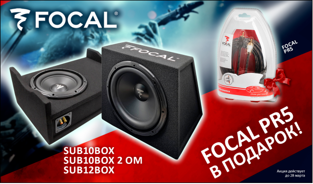 Акция - при покупке корпусного сабвуфера FOCAL SUB10BOX, FOCAL SUB10BOX 2 ОМ, FOCAL SUB12BOX - межблочный кабель Focal PR5 в подарок!